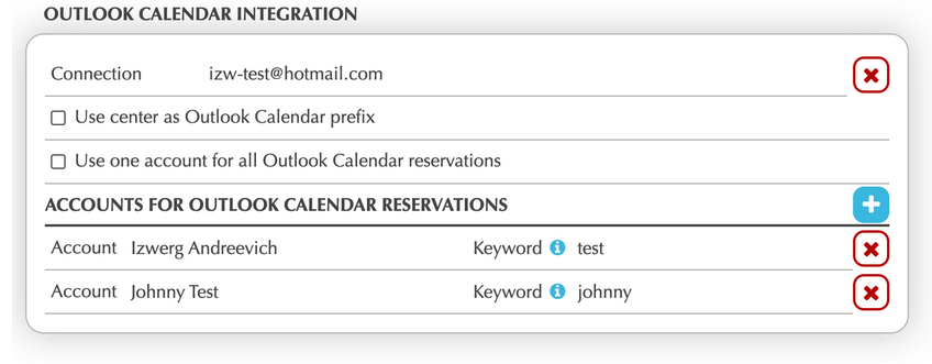 - You can either use one Deskworks account to receive all Outlook Calendar reservations or select multiple Deskworks accounts that can accept reservations made by Outlook. If selecting multiple accounts, use a keyword that will always be sent from Outlook when a reservation is made.