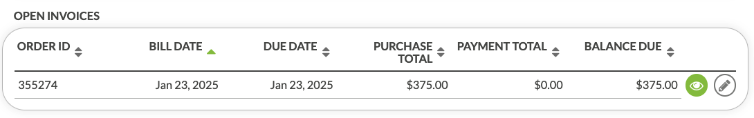 - Click the EDIT pencil next to the Order/INVOICE you want to send.